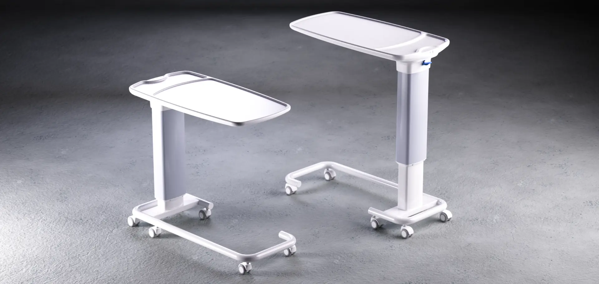 The overbed table incorporates smooth lines and contours across its form, resulting in a minimalistic design aesthetic and a product which is easy to clean. All hard-to-reach depressions and crevasses have been designed out, while split lines or joints between components have been kept to a minimum. This innovative design makes previously hard to maintain, unsanitary hospital furniture vastly easier and quicker to clean.